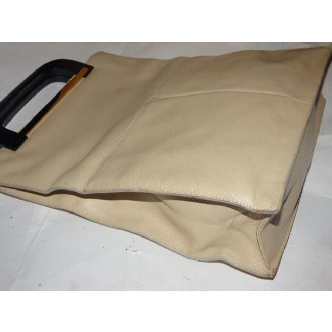 For sale is a vintage, Tom Ford era, Gucci, stone colored textured leather, fold-able. chic style tote or shopper with two lacquered wood? and sleek gold accents and would be great used as your signature tote!