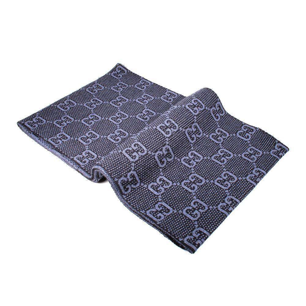 Gucci Scarf Men’s Navy GG Pattern 100% Lana Wool (GGS42) | AlmaBagz