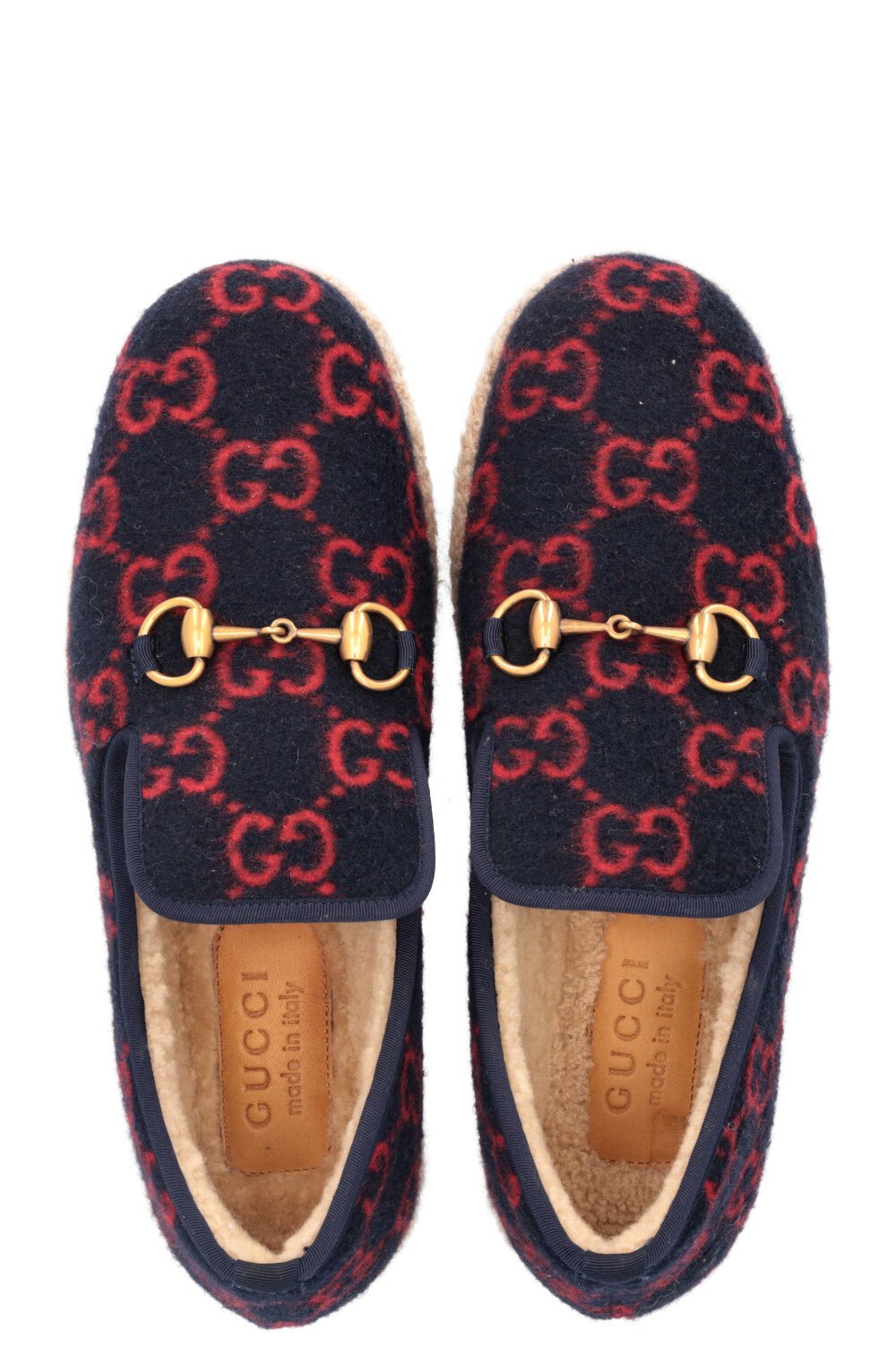Die Shearling Jordaan Espadrilles kombinieren Luxus mit Komfort und sind das perfekte Accessoire für stilbewusste Kunden. Das hochwertige Shearling und die elegante Navy-Farbe machen diese Espadrilles zu einem vielseitigen Klassiker, der jedes Outfit aufwertet. Mit ihrem zeitlosen Design und der unverwechselbaren GUCCI-Qualität bieten sie sowohl modischen Chic als auch erstklassigen Tragekomfort.