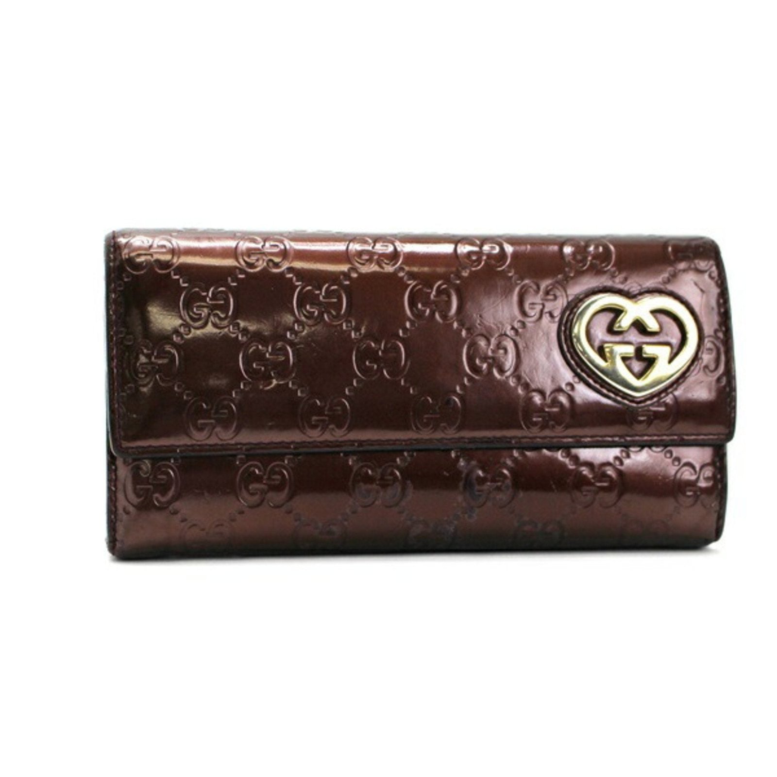 Gucci Shima Bi-Fold Wallet Lovely Heart Patent Leather Brown 251861 Ladies Logo Enamel