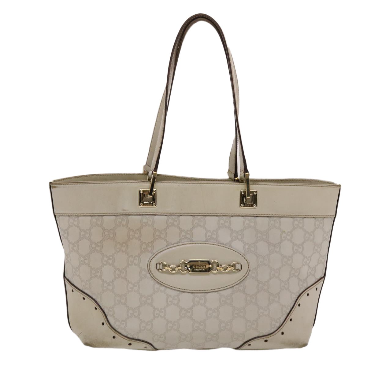 GUCCI Shima Tote Bag Leather White 49072