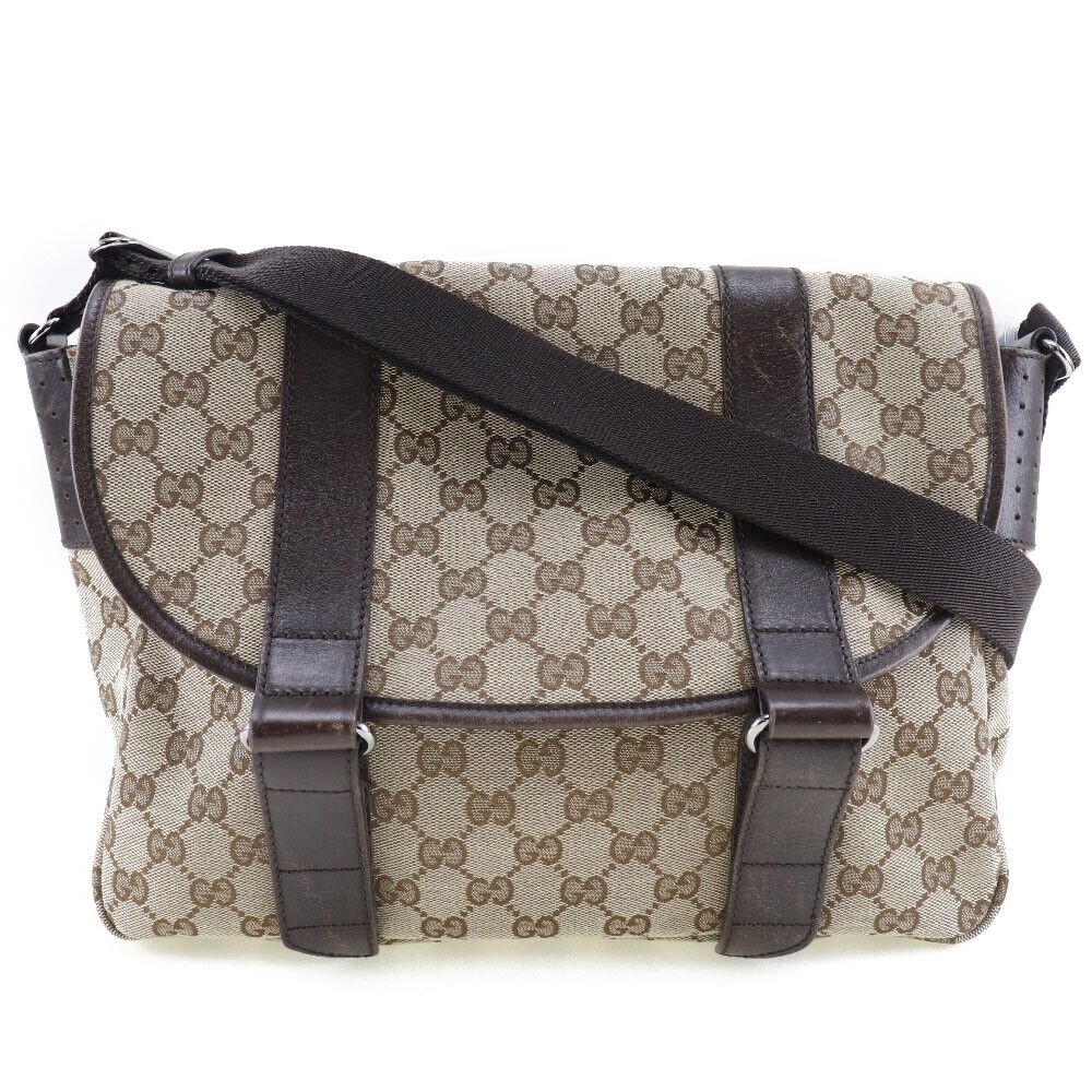 The bag features a durable GG canvas and leather construction, ensuring longevity and resilience. Its spacious interior provides ample room for your essentials, while the adjustable shoulder strap offers customizable comfort. The iconic Gucci logo adds a touch of elegance, making it a perfect accessory for any occasion.