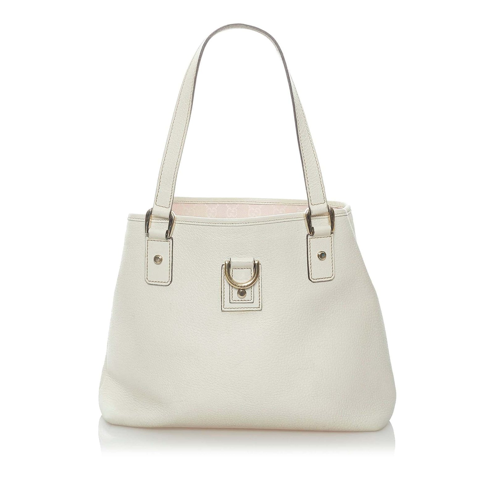 The D-Ring tote bag features a leather body, flat leather handles, an open top, and interior zip and slip pockets. Comes with dust bag