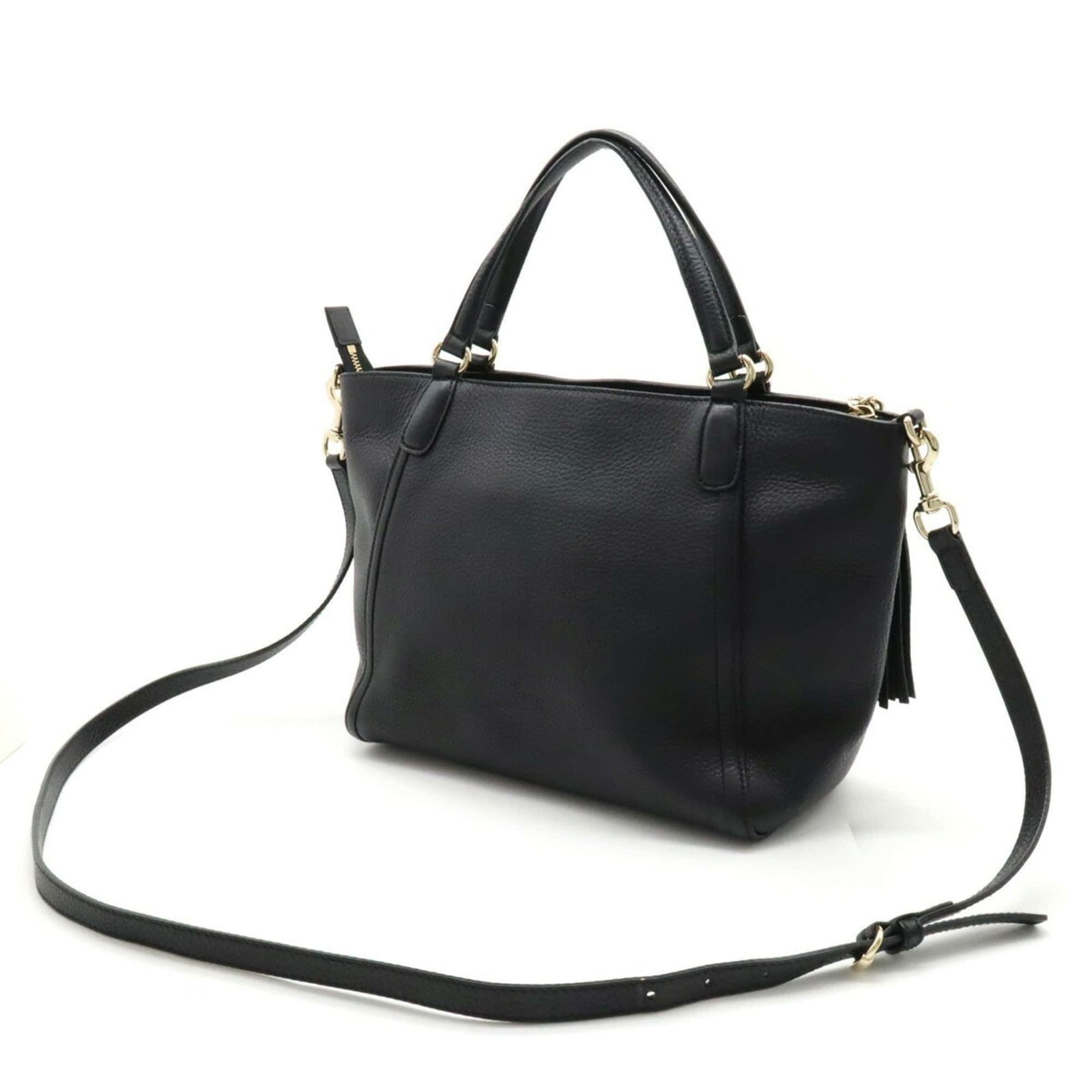 Gucci Soho Interlocking G Tote Bag Shoulder Tassel Leather Black 369176