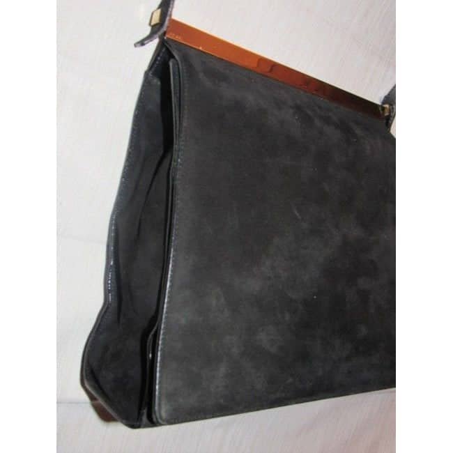 The bag is a rare, black suede & leather purse by Gucci that is very avant garde and European chic. It is a shoulder bag with a long, envelope top, snap style closure. The interior was the black leather upper that gets sticky, so the sticky part was removed and the lining was restored to the soft fabric below for you! The interior has a zip close pocket. It is the perfect black purse that can be dressed up or down!