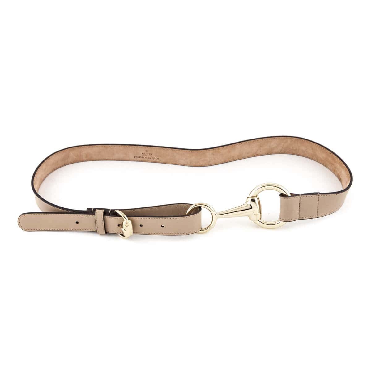 This Gucci Horsebit Belt is the ultimate neutral accessory that can be styled in many different ways. Fabricated in Italy, this taupe leather belt shows off the Italian brand’s signature gold-tone horsebit detailing along the center of this luxury accessory. An adjustable circular buckle closure sits on the left side of this designer belt and the interior is lined in a beige suede for the perfect finishing touch. For an haute-couture inspired look, pair this Gucci Leather Belt with over a flowy maxi dress and leather boots.