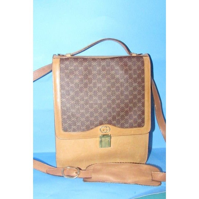It is a medium to large, top handle satchel, two-way- handheld or shoulder style purse with a removable strap. It is made of a tan micro Guccissima print on burgundy coated canvas and buttery soft camel leather with gold hardware. There is a zip close pocket on the exterior, it has an envelope style top, and it has a slide and lock clasp! The strap is adjustable and removable and has a shoulder pad that is also removable. This is a fabulous piece for a traveler or as your everyday brown purse!