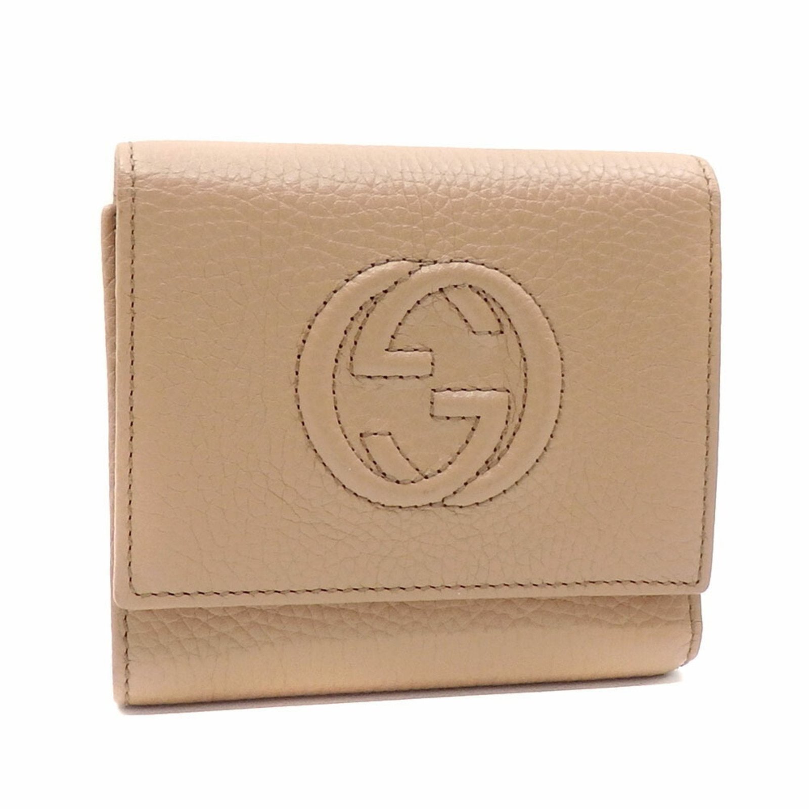 Gucci trifold wallet ladies beige leather 598207 GG