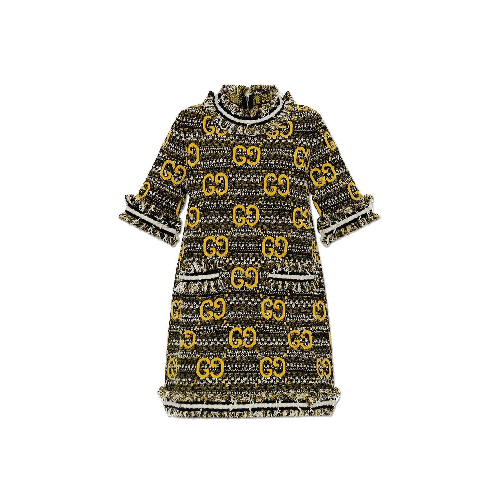 – Composition: 2% Cotton 2% Linen 1% Metallised Fiber 1% Mohair 91% Wool – Back zip closure – All-over monogram – Two slip pockets – Short sleeve – Hand wash – Made in Italy – Gender: WOMEN – MPN 721151 XKCQX 1127 – Code: DRS GU 2 KD FW P00006 670