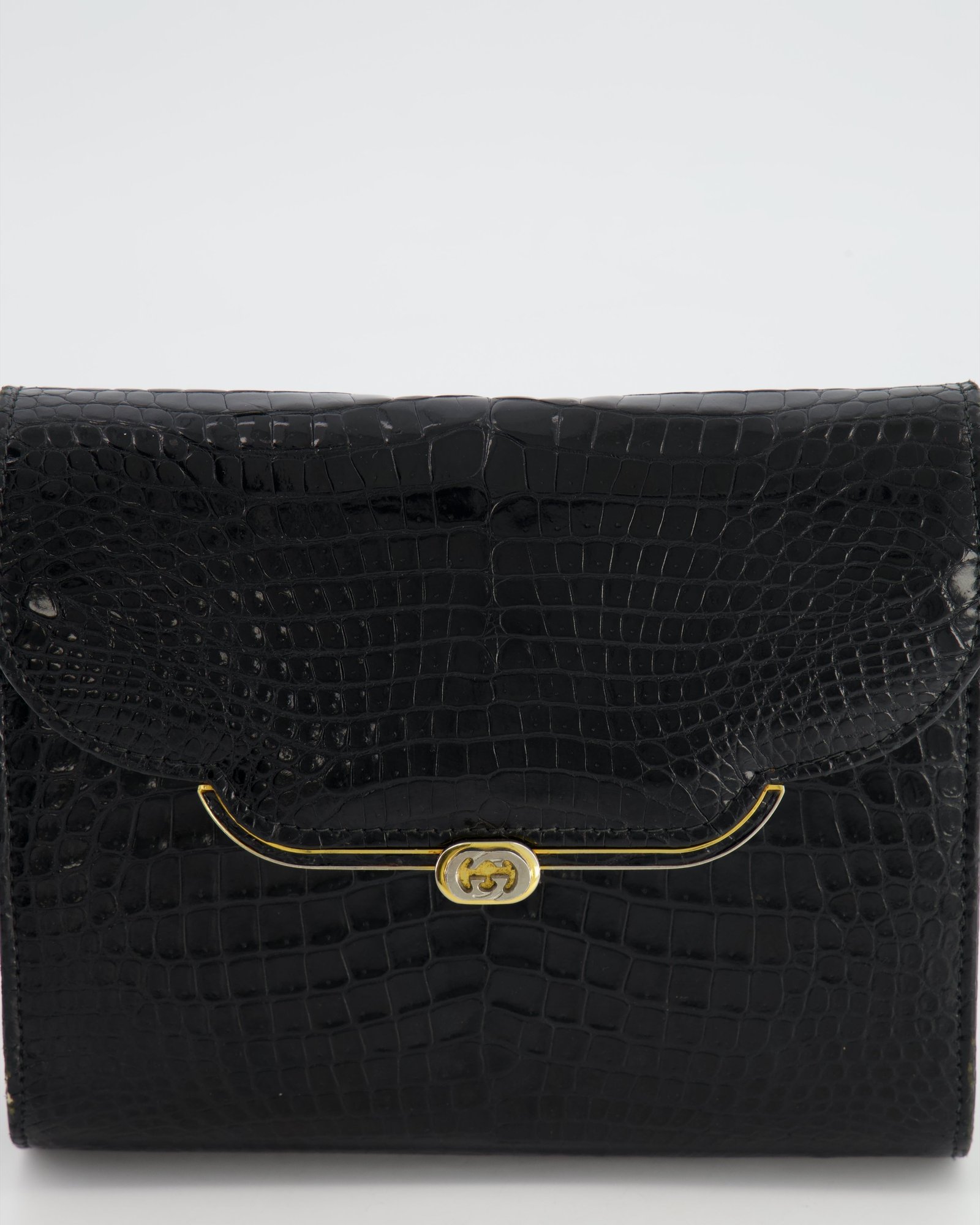 Gucci Vintage Black Crocodile Leather GG Clutch Bag