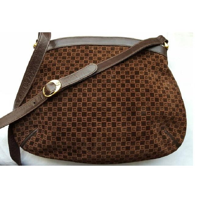The bag is unusual- not like the classic, Gucci, purses I see on here for sale. The purse is brown suede with brown leather. The suede has a small G logo print with a more squared G. The top is a zip top style and it has one wide strap with gold hardware and gold, engraved, Gucci ‘G’ accents at the top and as the strap’s buckle! The purse is a perfect everyday purse!