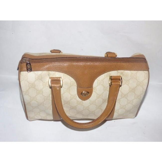 For sale is a Gucci, camel large G logo print on ivory coated canvas & leather, mod, doctor’s satchel/speedy bag with a classic, timeless style! This is a great looking, classic purse from Gucci with a timeless style!
