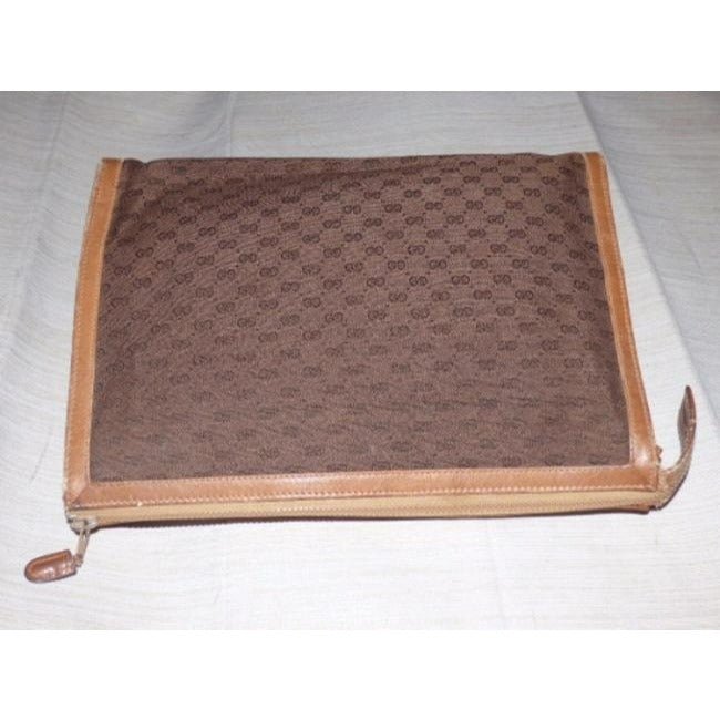 * For sale is a Gucci, small G logo brown fabric & camel leather, rectangular, zip top, classic, roomy, clutch style purse! A quality classic purse from Gucci that will be the only brown purse you will need!