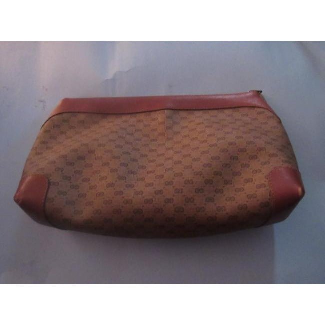 * For sale is a Gucci, small G logo print on brown coated canvas & medium brown leather, rectangular, zip top, classic, roomy, clutch style purse! A quality classic purse from Gucci that will be the only brown purse you will need!