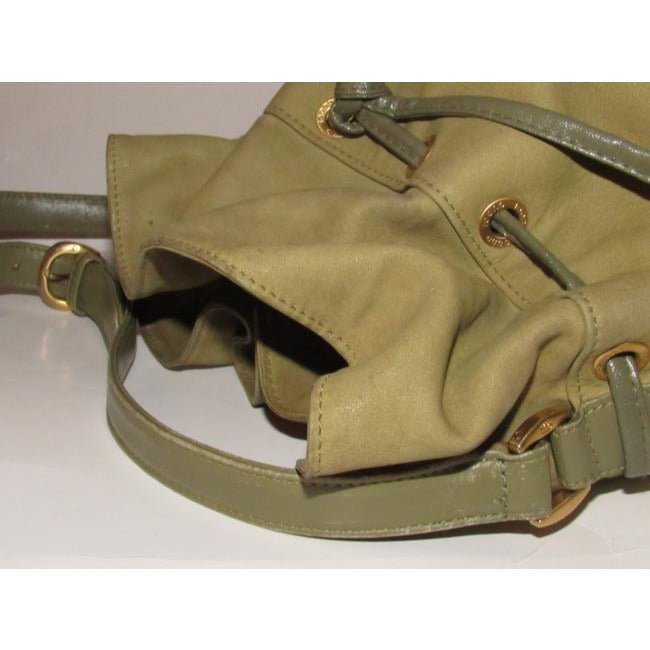 You will never need another green purse! This is a wonderful, year round, everyday, suede and leather purse. It would make a great gift for someone else or for yourself. It would be a fantastic addition to any collection! It is Gucci, so it will never go out of style and has all the quality Gucci is known for in its leather purses! Gucci’s new lines consist of purses that are very similar to these vintage drawstring bucket bags- they are a style that is timeless!