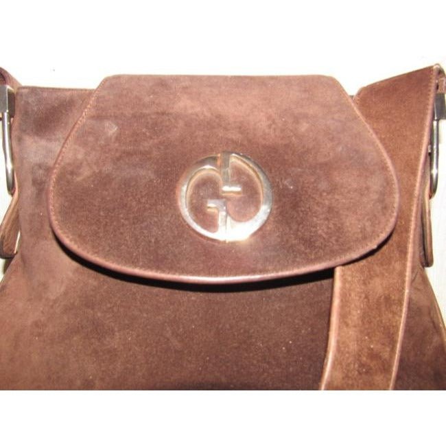 The bag is unusual- not like the classic, Gucci, purses I see online for sale. It is definitely from the 1970’s, based on its mod style. The purse is a chocolate brown suede and leather. It has a gold tone double GG flap snap closure on a wide flap that matches the suede/leather. The hardware is a bold gold color and there are large buckles on the sides that attach the strap.