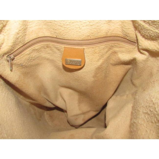 The bag is a cream coated canvas with a camel colored micro Guccissima logo print and camel leather Gucci bucket purse that is probably from the 1980’s/90’s. It is a drawstring bucket / cross body or shoulder style with lots of room. It has the small G logo design in camel colored brown against the cream body and camel leather accents at the top, strap and piping. Around the bottom, there is a wide stripe in red and green! There is a zip pocket on the inside. This is a perfect signature purse.