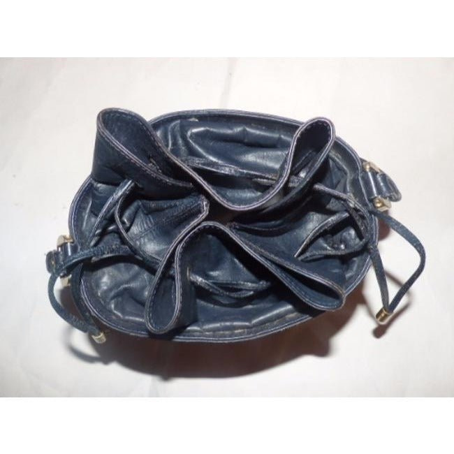The bag has a navy blue, small G logo, coated canvas, body with a long, navy leather top where the drawstring closure is plus other accents. It is a drawstring bucket / cross body style with lots of room. The strap has snaps, do you can adjust it to 2 lengths and the large leather top where the drawstring is allows you to carry quite a bit while not looking like you are schlepping a suitcase. It has a fun, mod look while still looking like a fabulous high end purse that will never go out of style. It’d be a fantastic addition to any collection! The exterior of the purse is in mint vintage condition on the interior and exterior- don’t miss out!