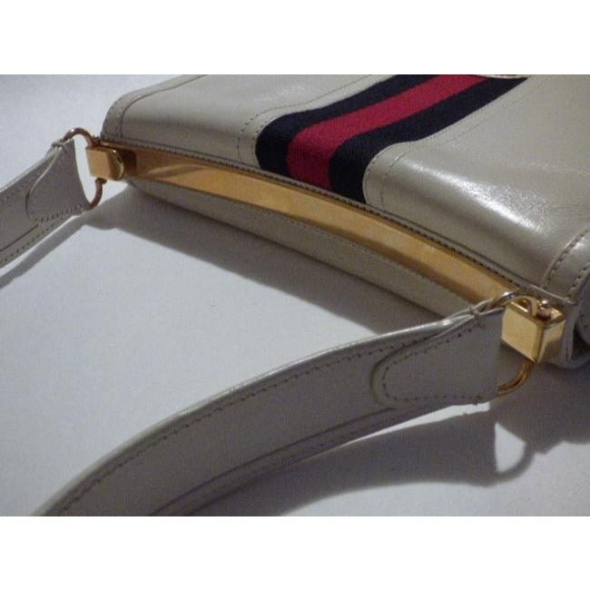 For sale is a vintage, RARE, Gucci, bohemian/mod, white leather, single strap, envelope top, shoulder purse with a wide red/navy center stripe, and bold gold accents! This is a quality, rare, early purse from Gucci that will be the only white purse you will need!