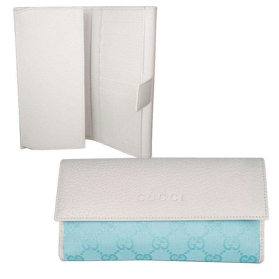 - Gucci Wallet Large GG Logo Fabric & Leather White & Blue 143389 (GGWAL2515)