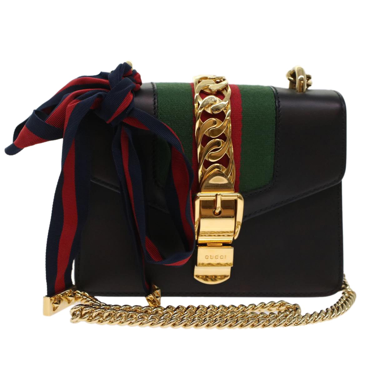 GUCCI Web Sherry Line Chain Silvi Shoulder Bag Leather Black 431666 49437A