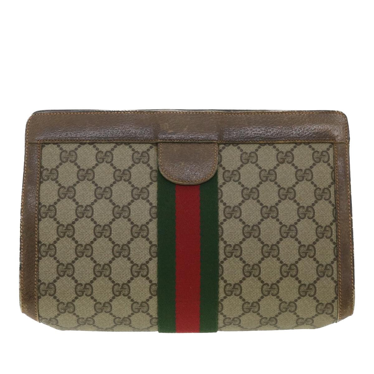 GUCCI Web Sherry Line GG Canvas Clutch Bag PVC Leather Beige Green 89 36433