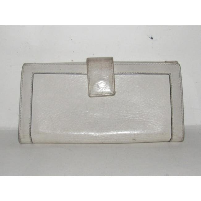 For sale is a Gucci, white leather, bi-fold style, rectangular, checkbook size, wallet with gold, hinged G clasp! This rare vintage Gucci wallet would look great with lots of different styles of Gucci purses!