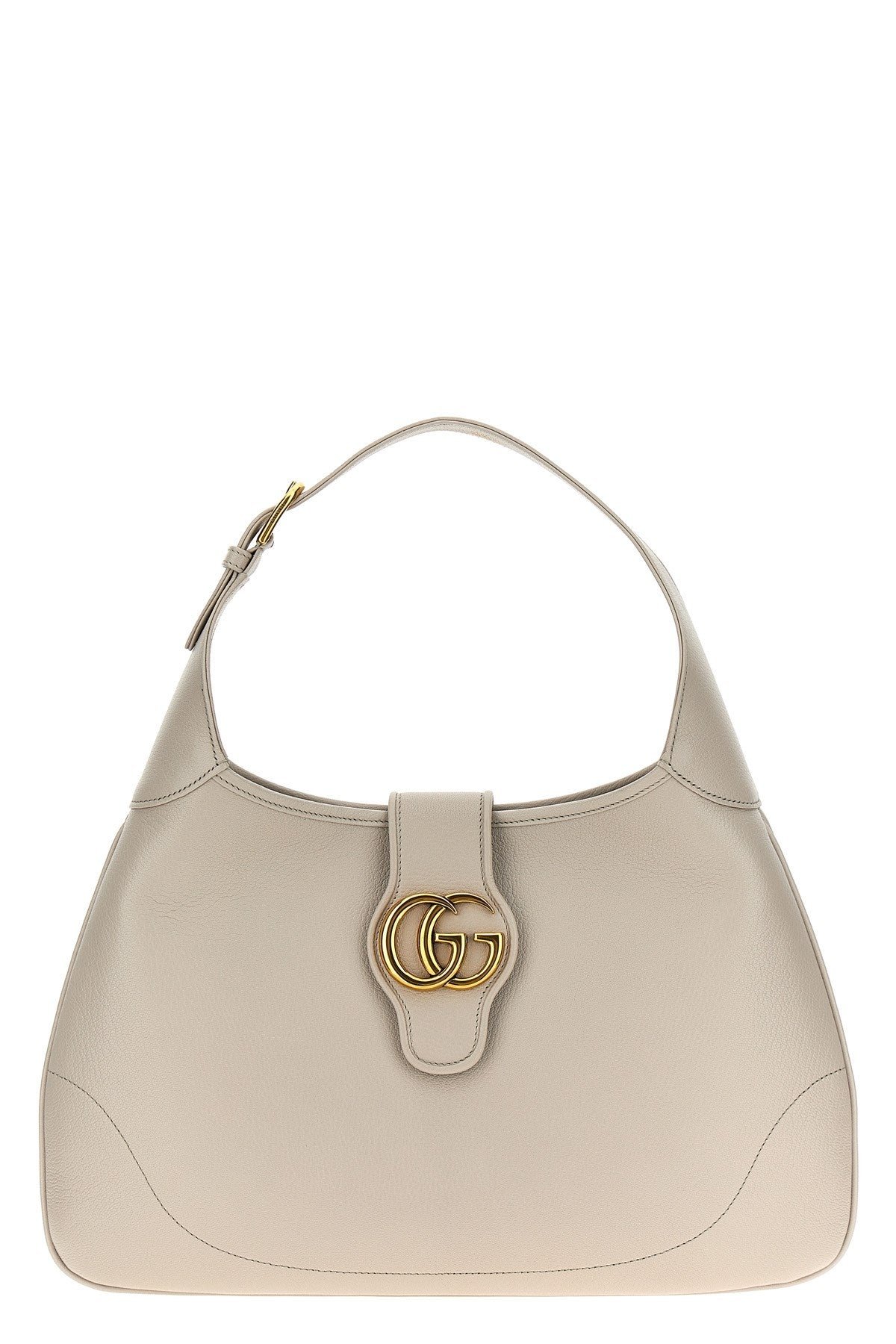 Aphrodite’ midi shoulder bag in light grey leather with magnetic closure with metal logo detail, adjustable fixed handle, adjustable and removable shoulder strap. Color: Gray Size & Fit: W 39 x H 38 x D 2 cm Composition: 100% goat leather (Capra Hircus Hircus) Made in: Italy