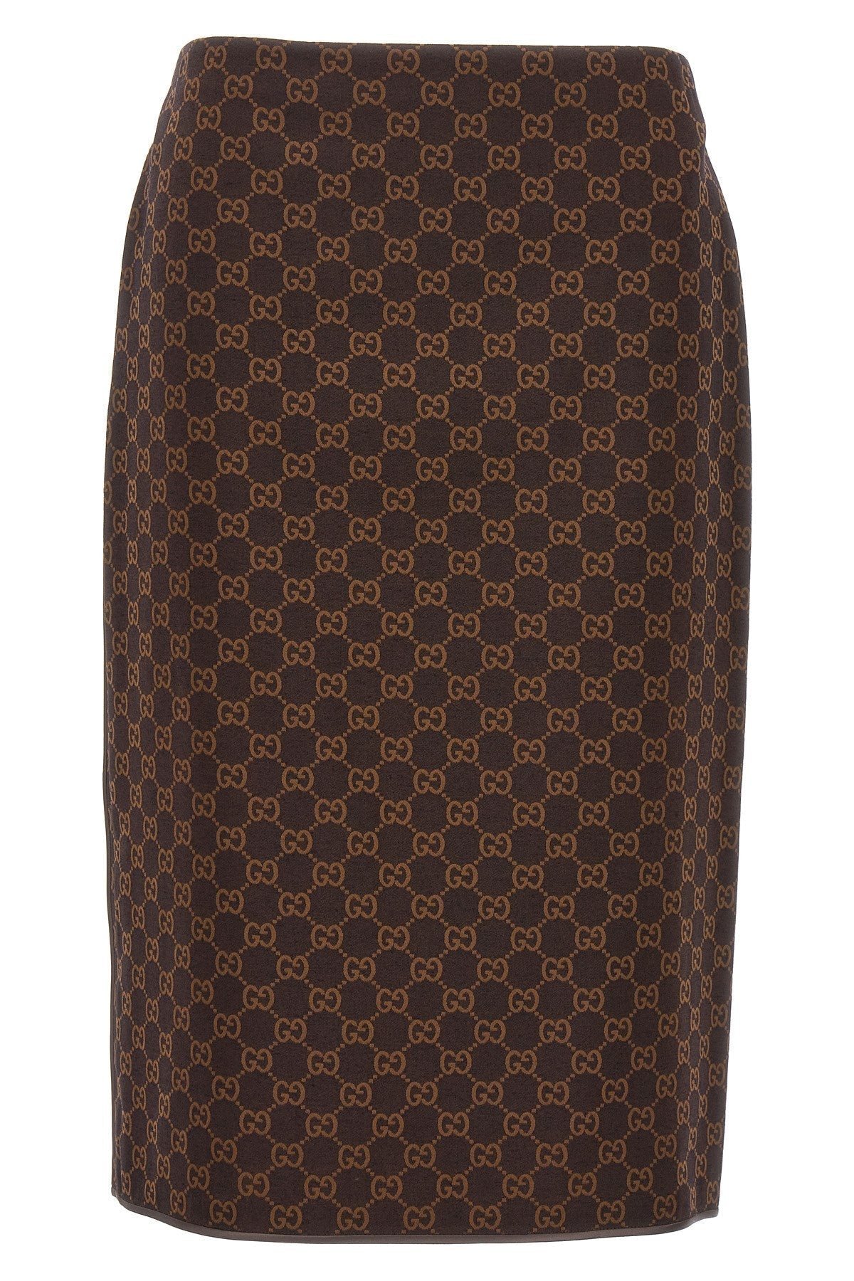 GG’ viscose skirt with all-over logo, midi length with hidden zip at the back and vent. Color: Brown Composition: 51% viscose 49% polyester Size&Fit: True to size fit