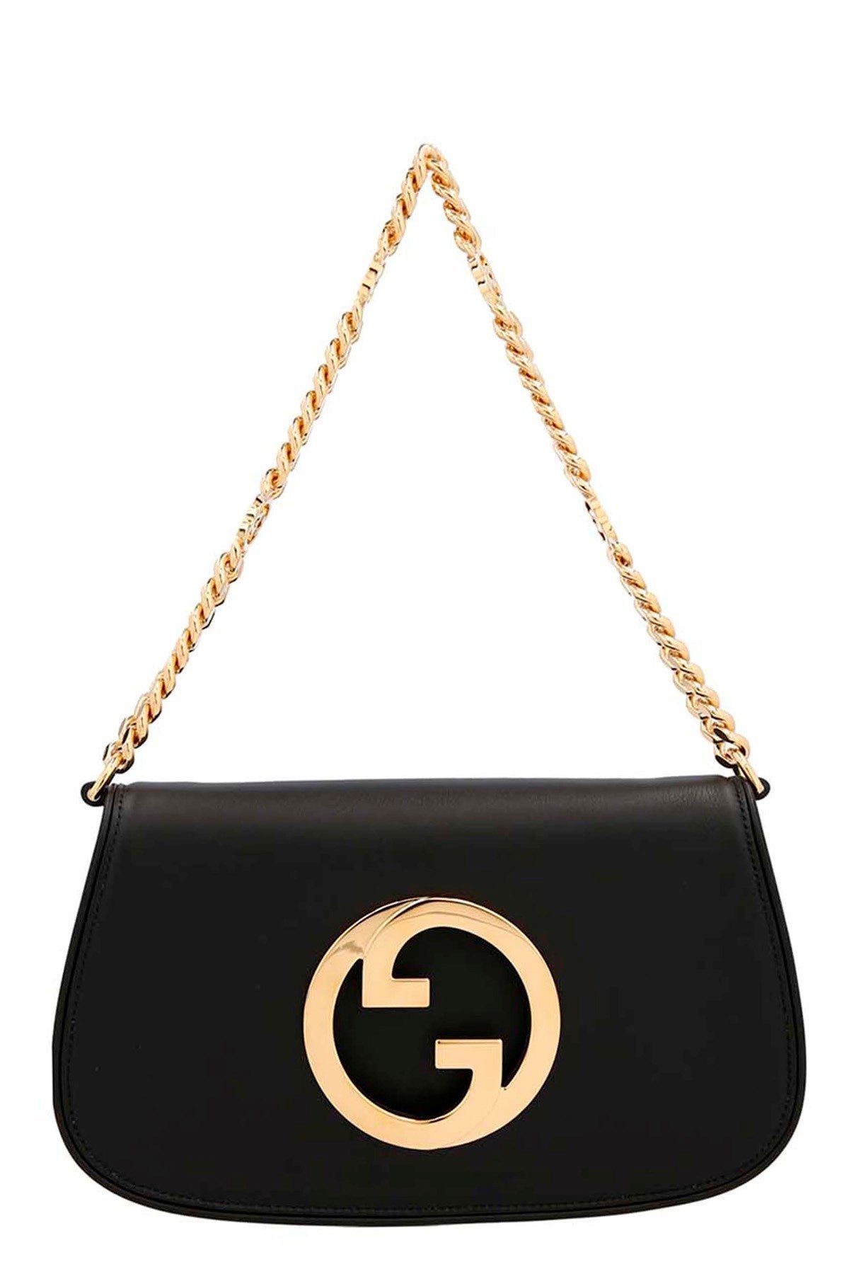 Gucci Blondie shoulder bag in black leather, leather lining, round crossing GG, chain handle with GG, adjustable and removable leather shoulder strap, and magnetic closure. Color: Black Size&Fit: W 28 x H 16 x D 4 cm