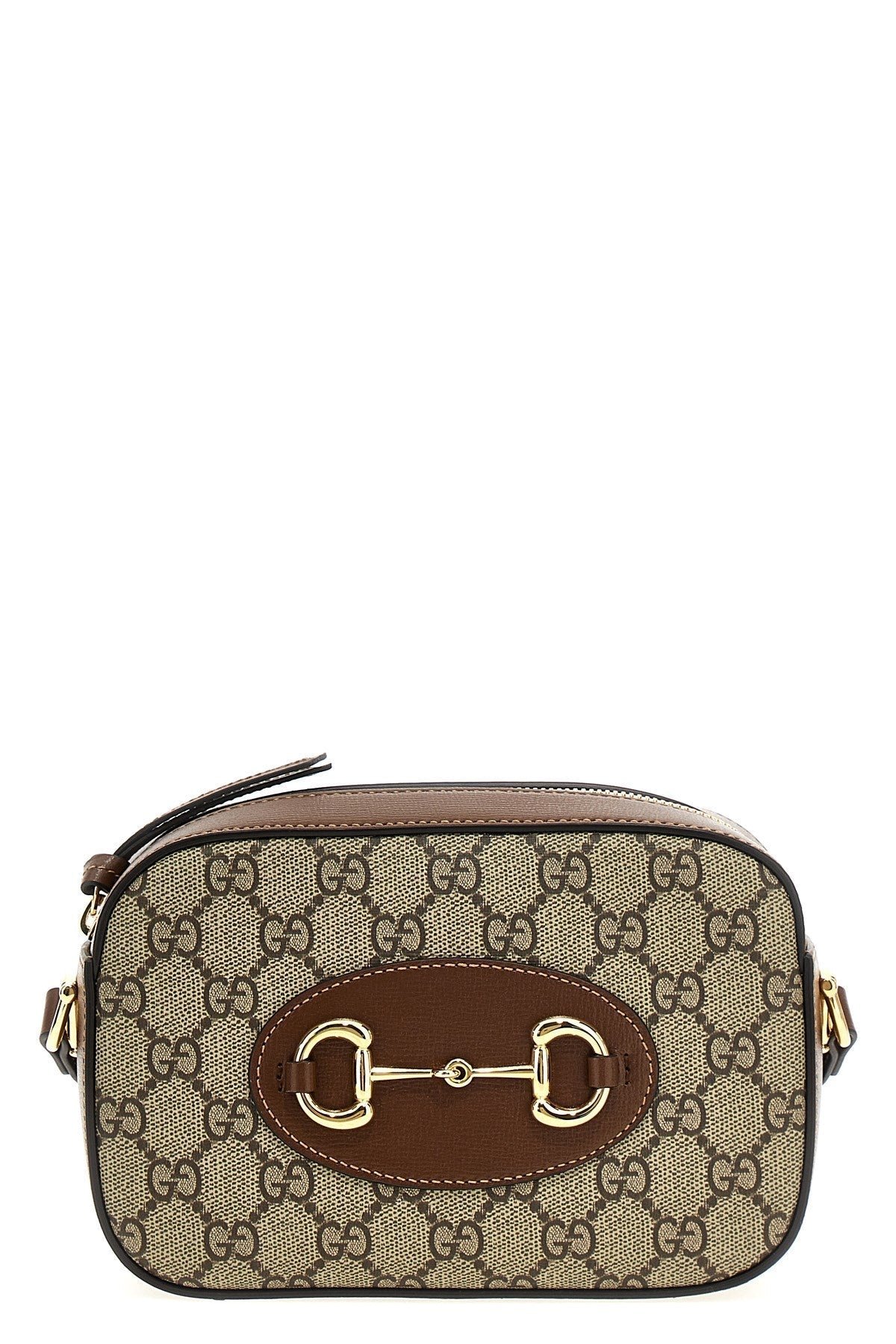 Gucci Horsebit 1955′ small shoulder bag in GG Supreme fabric with leather details, front snaffle detail, zip closure, adjustable shoulder strap. Color: Brown Size & Fit: W 20 x H 13 x D 6 cm Composition: 60% polyurethane 20% cotton 20% polyester Made in: Italy
