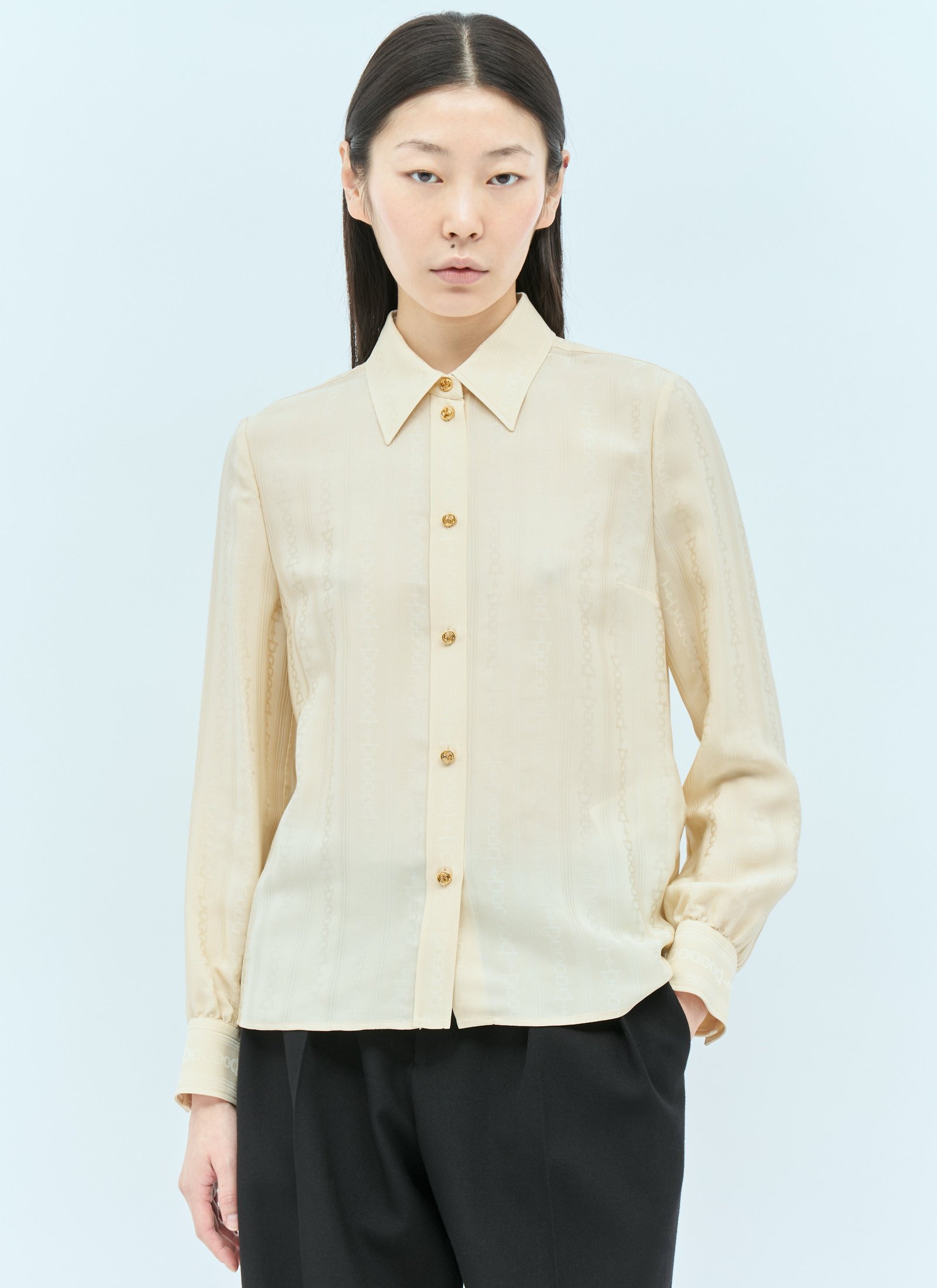 Horsebit shirt in silk satin with Interlocking G buttons. Classic collar Front button fastening Long sleeves Button fastening cuffs Horsebit motif Made in Italy 100% Silk. Dry clean Color: Beige Code: 771928 ZAOPY 9200