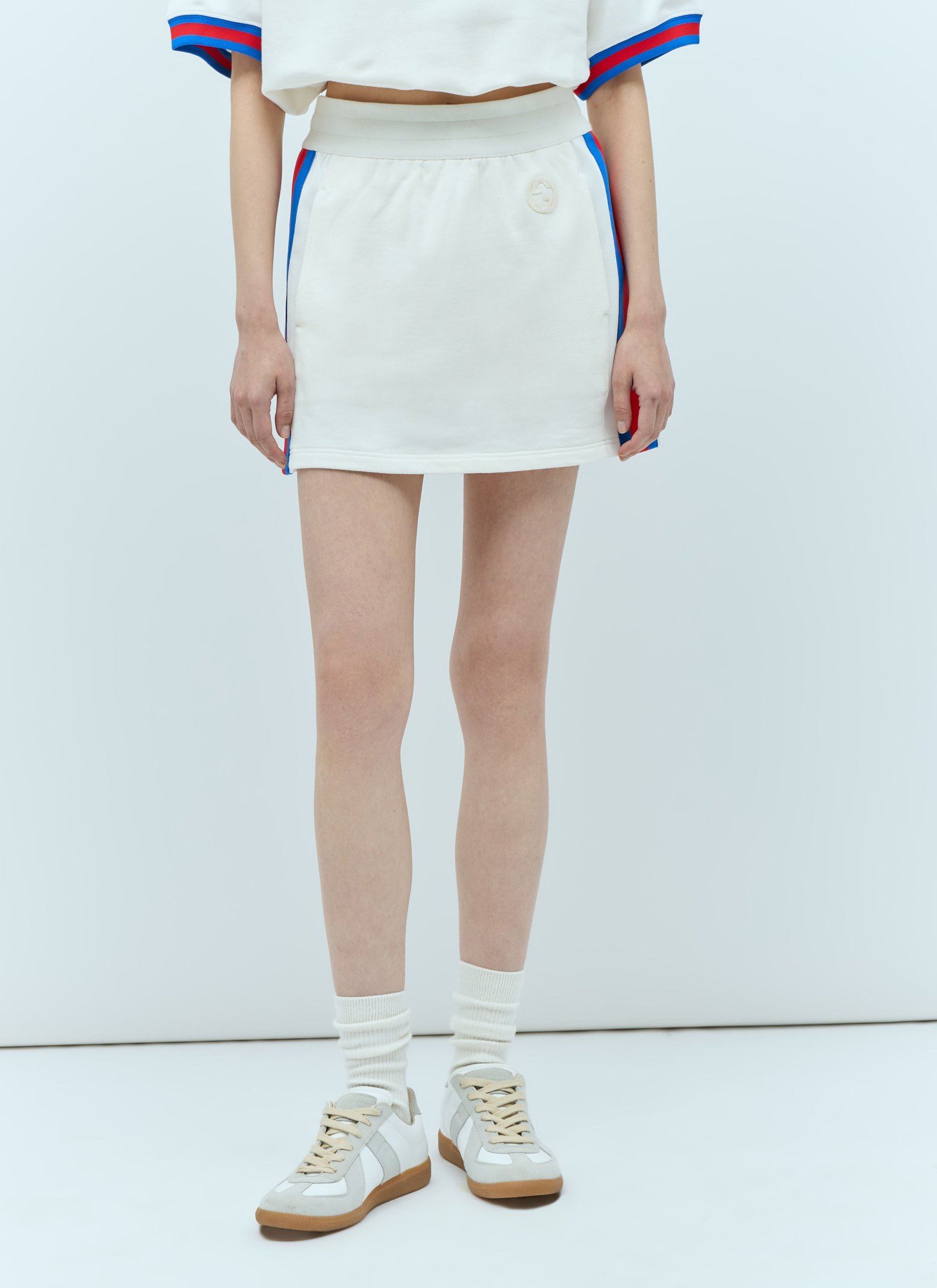 Mini skirt in cotton-jersey with Web Stripe trim. High rise Elasticated waistband Front logo applique Side Web Stripe Side pockets 100% Cotton. Hand wash Color: White Code: 773725 XJF8W 9088