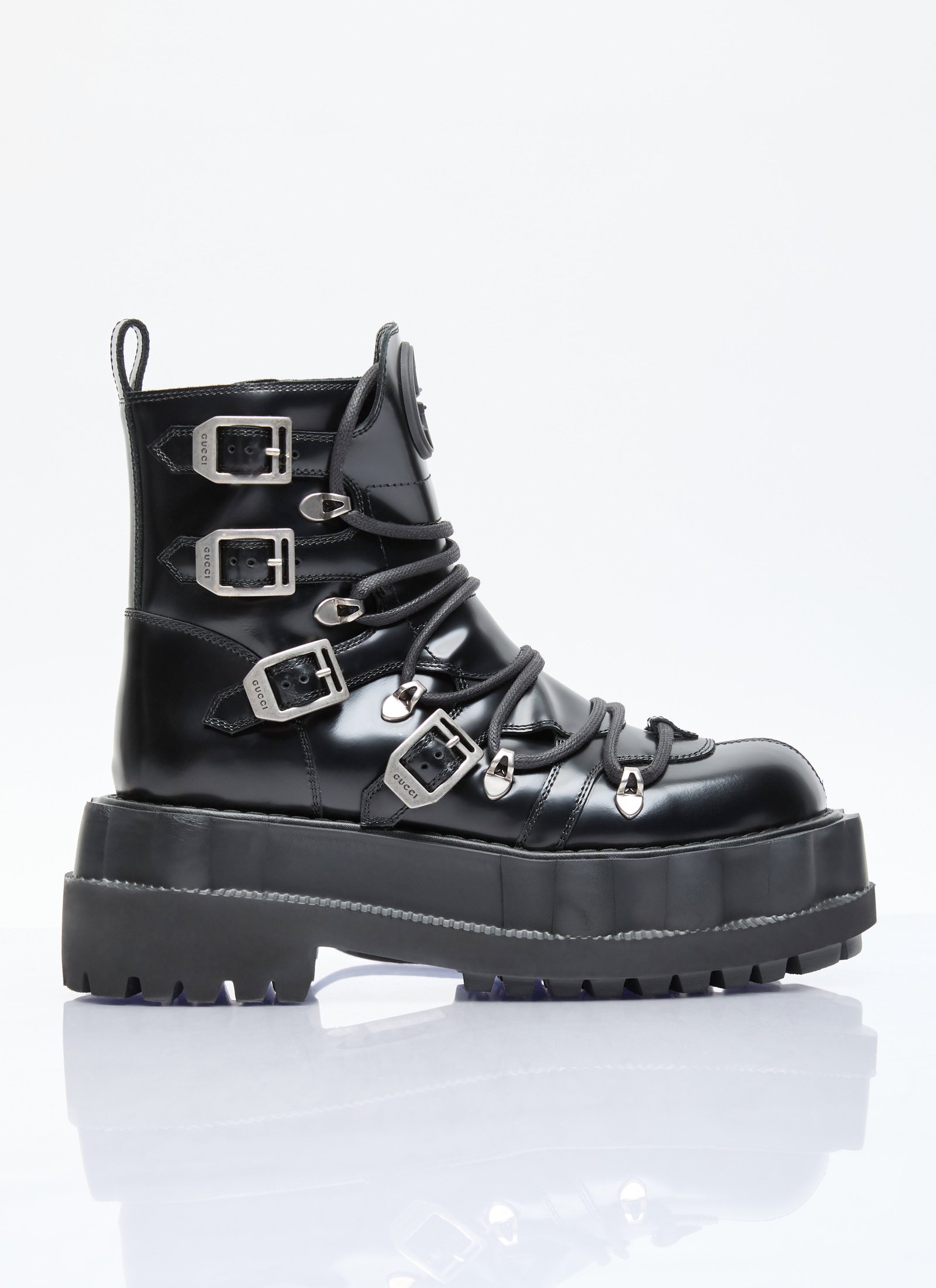 Leather Maja boots in smooth-grain finish. Round toe Side zip fastening Front lace-up construction Functioning side buckles with engrave logo motif Front logo motif Rear pull tab Treaded rubber sole Made in Italy 100% Leather Color: Black Code: 778219 DKS00 1000