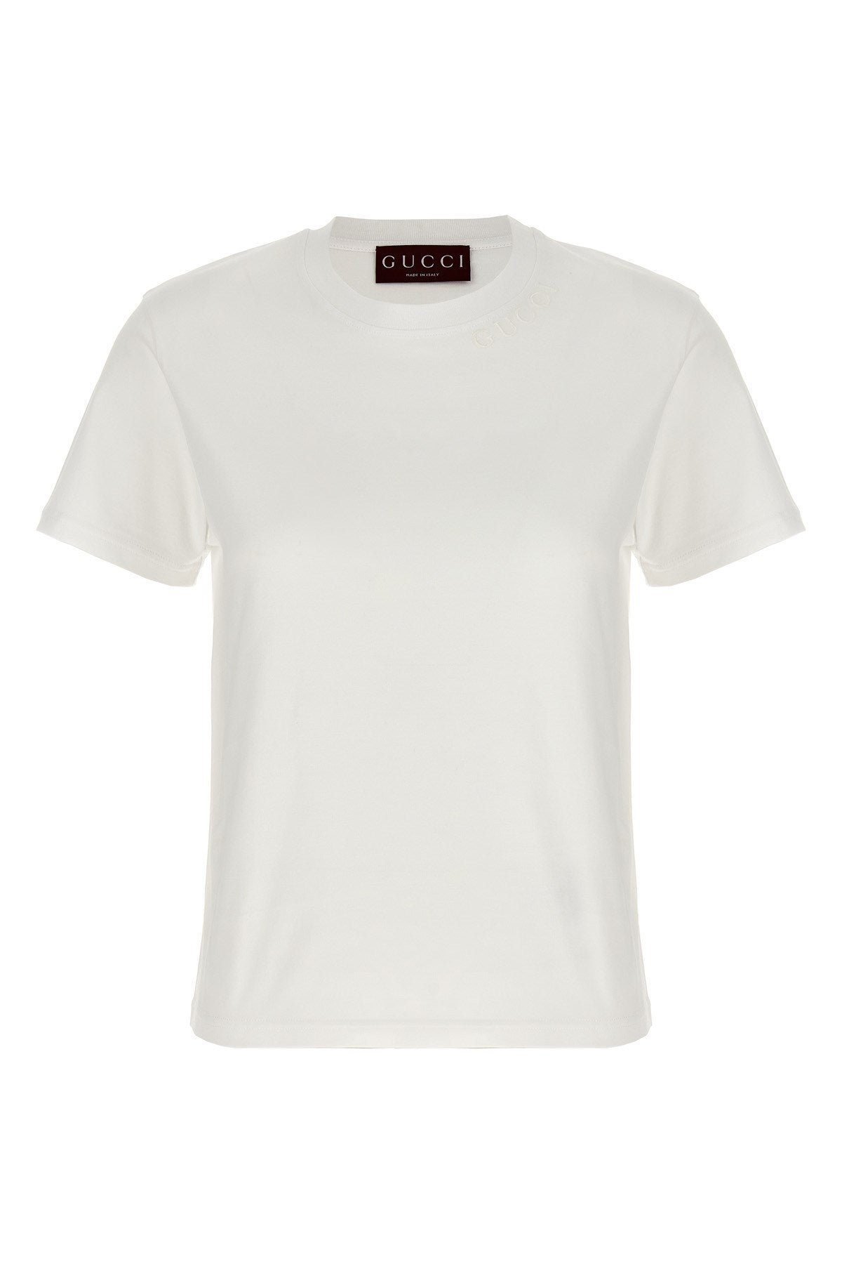 Cotton crew neck t-shirt with logo embroidery, short sleeves. Color: White Size & Fit: True to size fit Composition: 100% cotton Made in: Italy