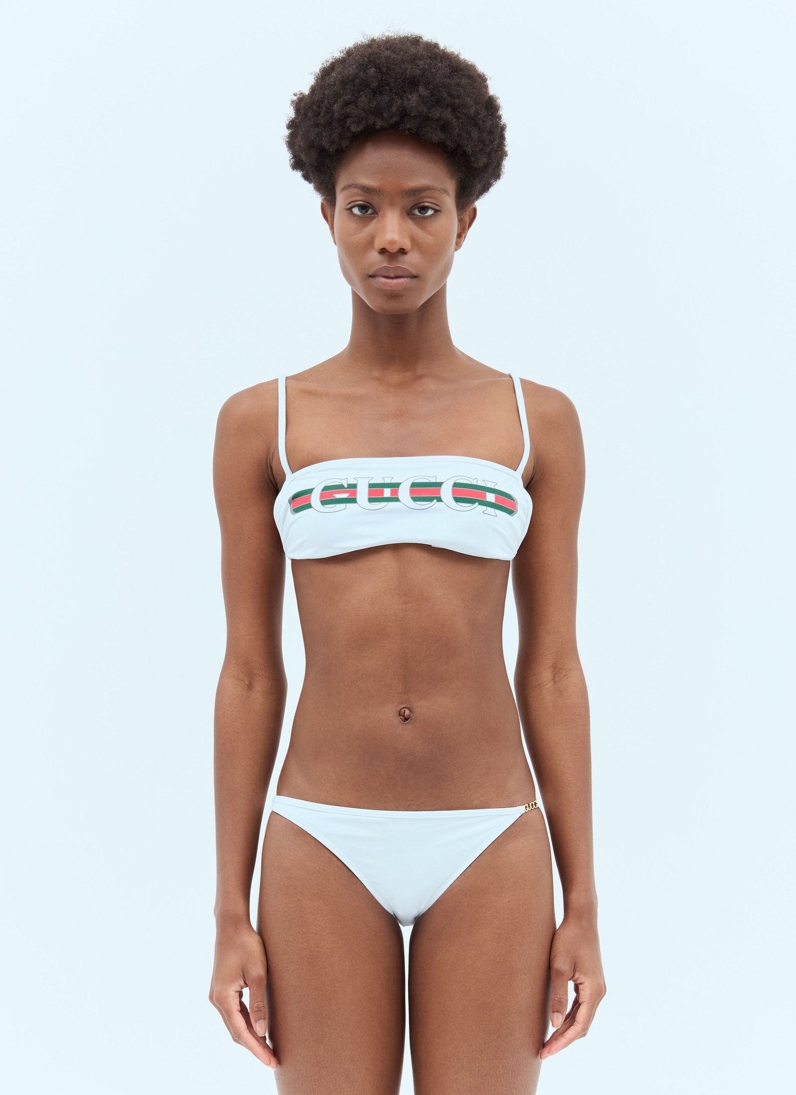 Logo print bikini set with logo hardware. Square neck Hook closure Camisole straps Logo print Gold-tone logo hardware Medium coverage 74% Polyamide, 26% Elastane. Hand wash Color: White Code: 785722 XHAJD 9081