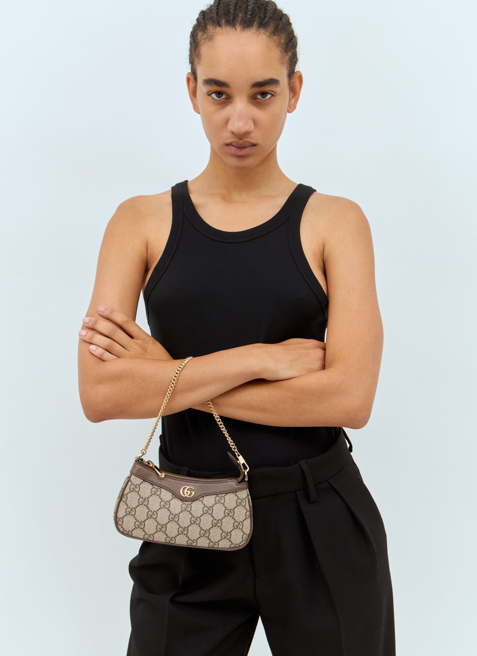 Ophidia mini shoulder bag in GG canvas and leather trims. Chain strap Top zip fastening Front logo plaque One main compartment Interior card slot Fully lined Made in Italy 60% Polyurethane, 20% Cotton, 20% Polyester Color: Beige Code: 764960 K9GSG 8367