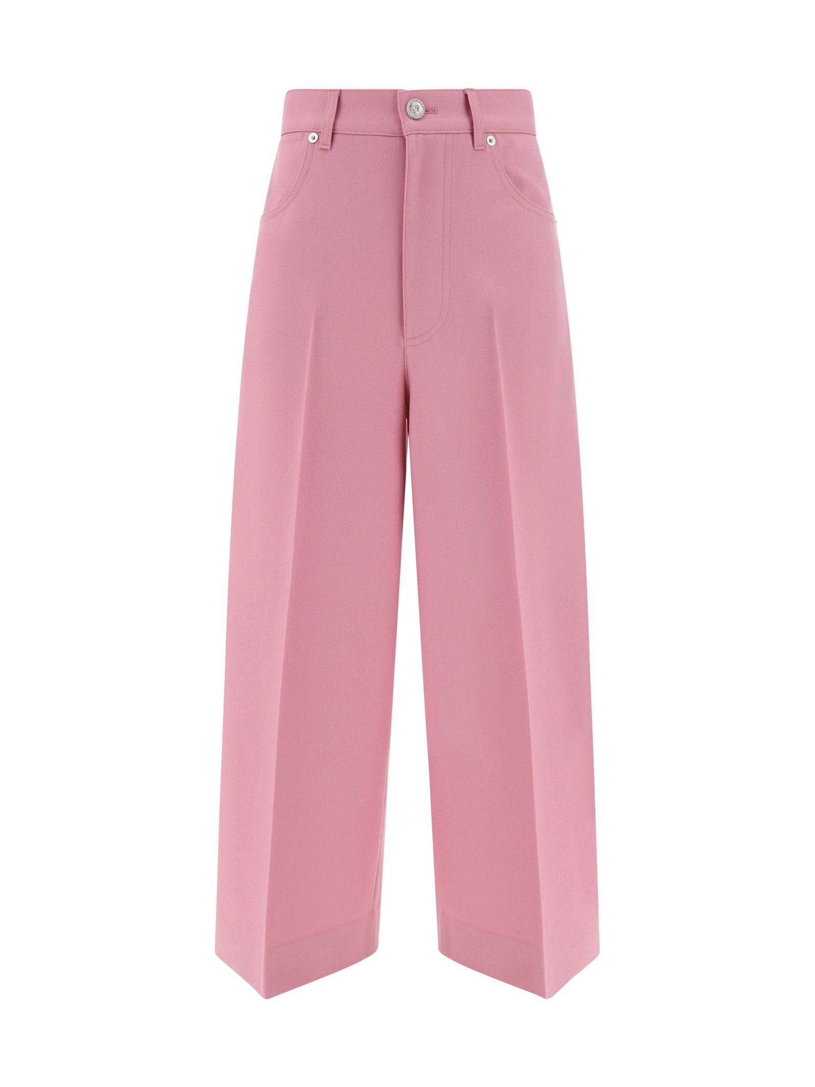 Wool Pants by Gucci, five-pocket style, front button and zipper closure, belt loops waistband, but-cut wide-leg style
