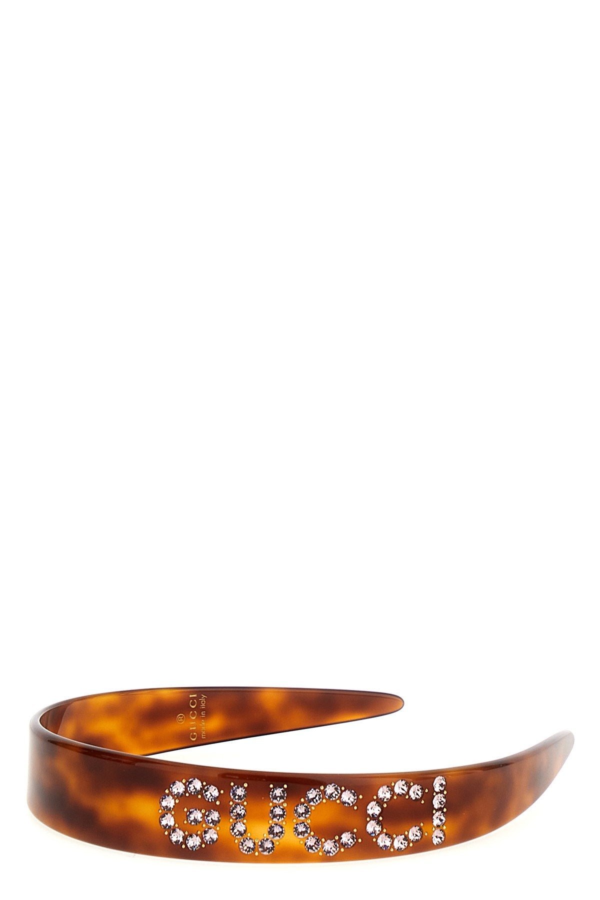 Turtle resin headband, rhinestone logo. Color: Brown Size & Fit: H 2.5 cm Composition: 100% resin Made in: Italy