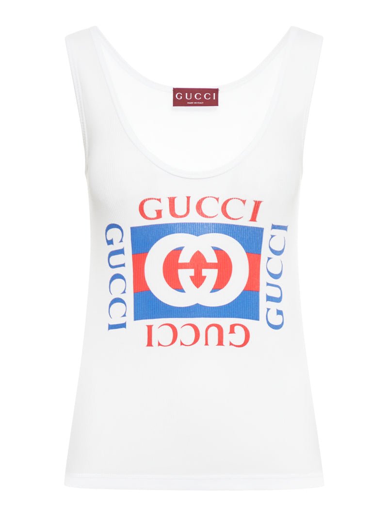 Gucci Women Ribbed Cotton Tank Top With Gucci Print | AlmaBagz