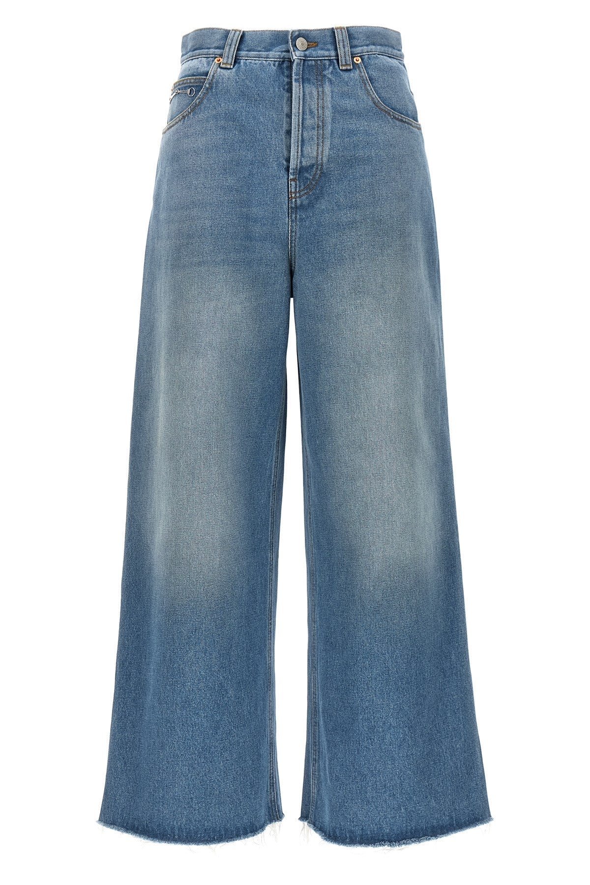 Skate’ wide leg jeans in cotton denim with raw cut hem, button closure, Clamp detail in the pocket. Color: Blue Composition: 100% cotton Size&Fit: true to size fit