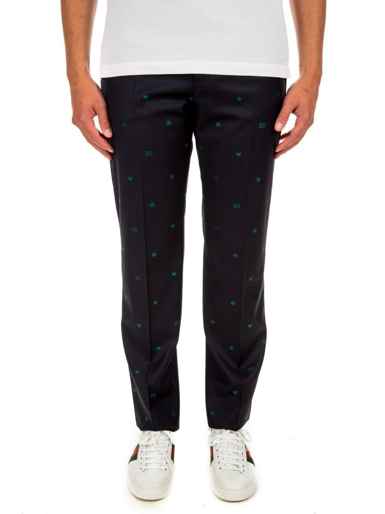 Gucci Wool Jacquard Pants in Dark Blue are made of a technical fabric, with an all-over monogram. Made from dark blue wool, these pants feature the house’s signature design elements, and are tailored with a sophisticated aesthetic, featuring one of the house’s bespoke pieces. With the blessing of professional craftsmanship, it creates a unique silhouette, showing a superior fit and drape effect. The inner cupro-lined waistband continues the brand’s consistently exquisite sewing craftsmanship, creating a classic design with outstanding styling.