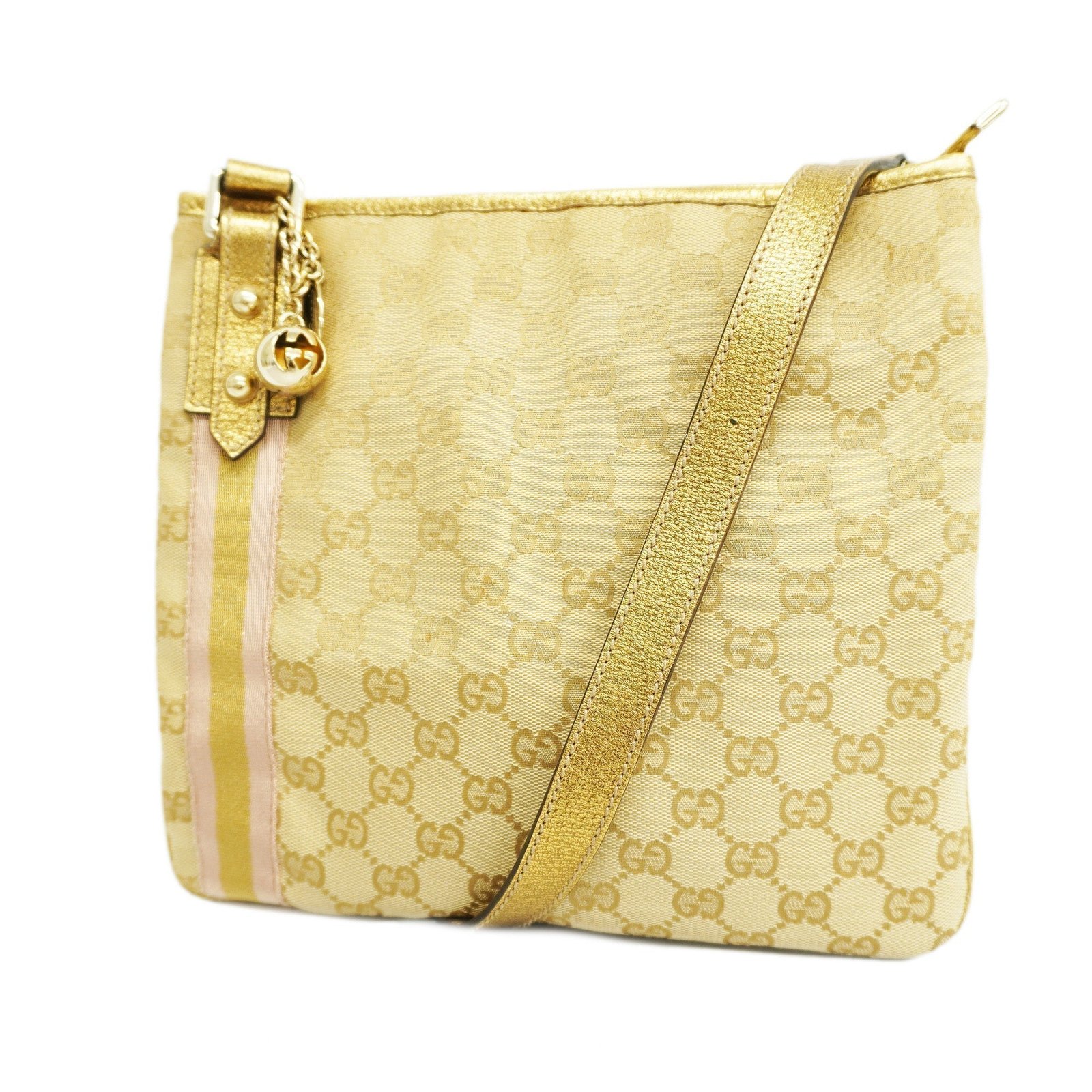 Gucci GG Canvas Shoulder Bag 144388 Women’s Leather Beige,Gold