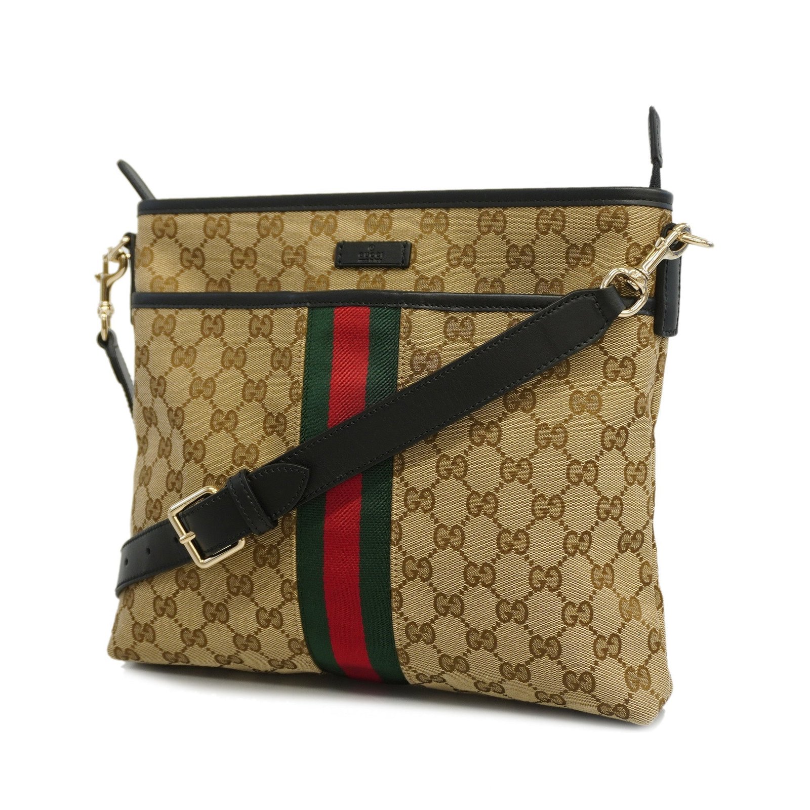 Gucci Sherry Line 388926 Unisex GG Canvas,Leather Shoulder Bag Beige,Black
