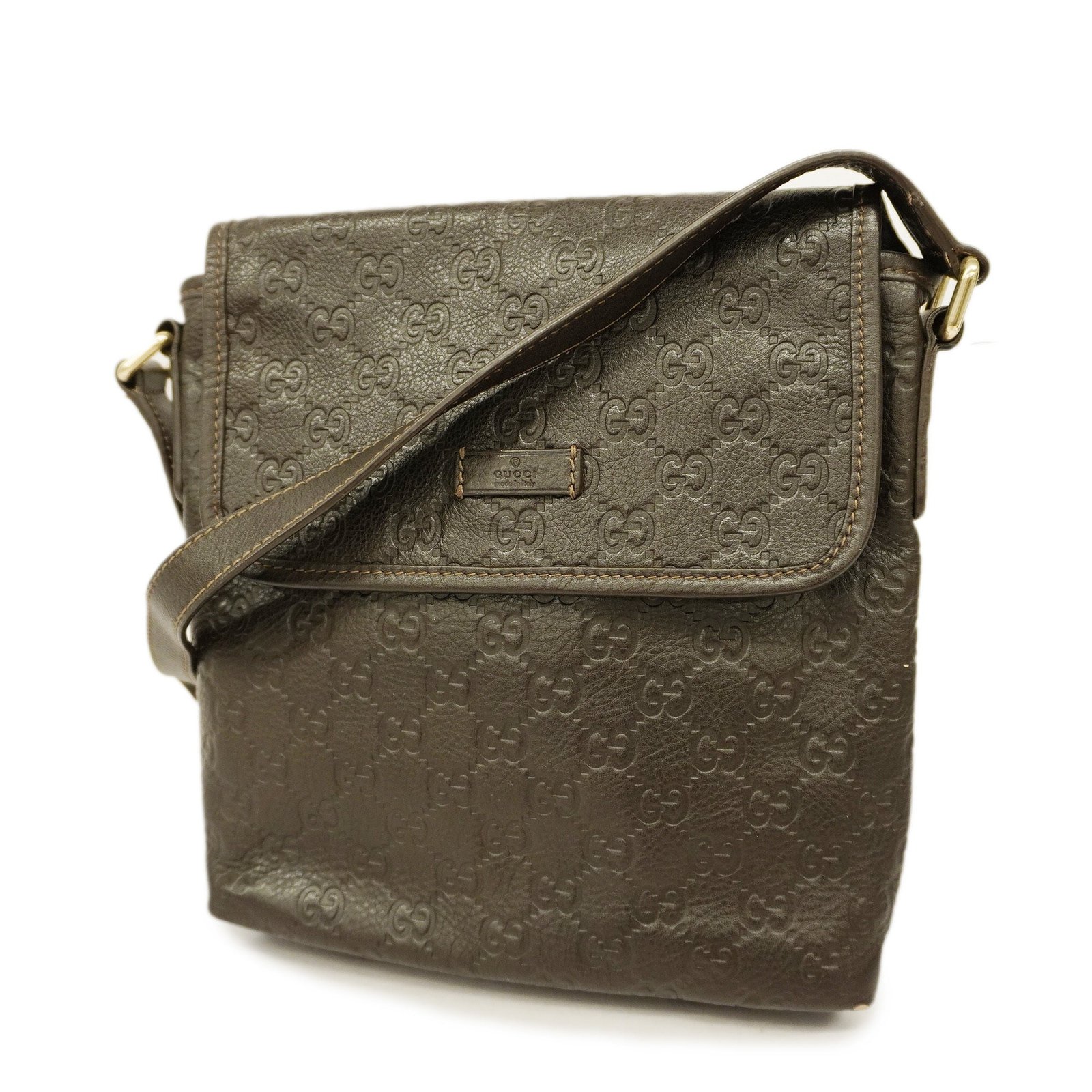 Gucci Sima 223666 Women’s Leather Shoulder Bag Dark Brown
