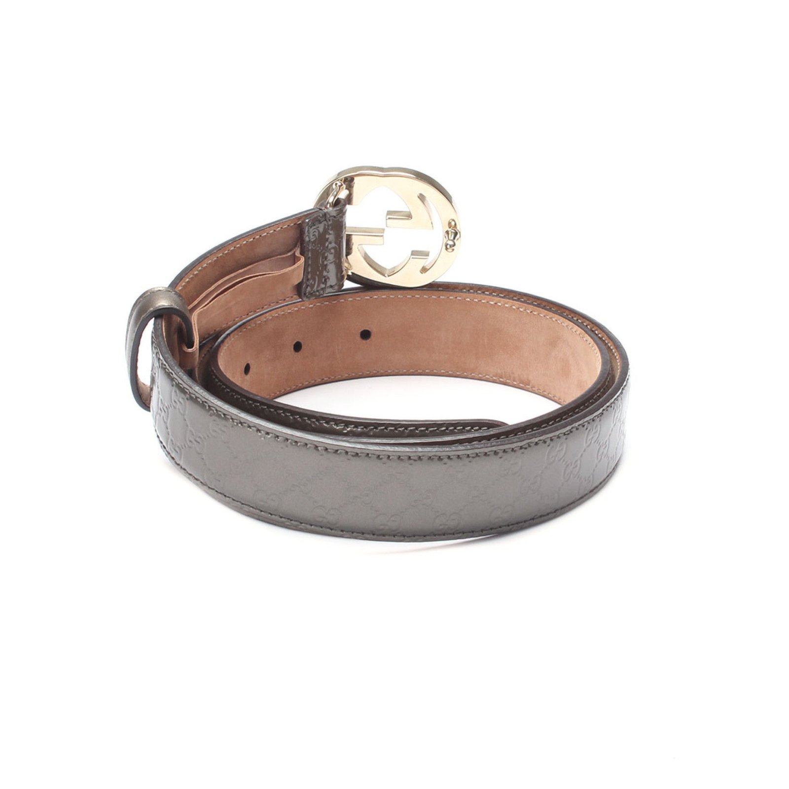 Gucci Guccissima Interlocking G belt. This à la mode belt was fabricated in microguccissima patent leather in silver.