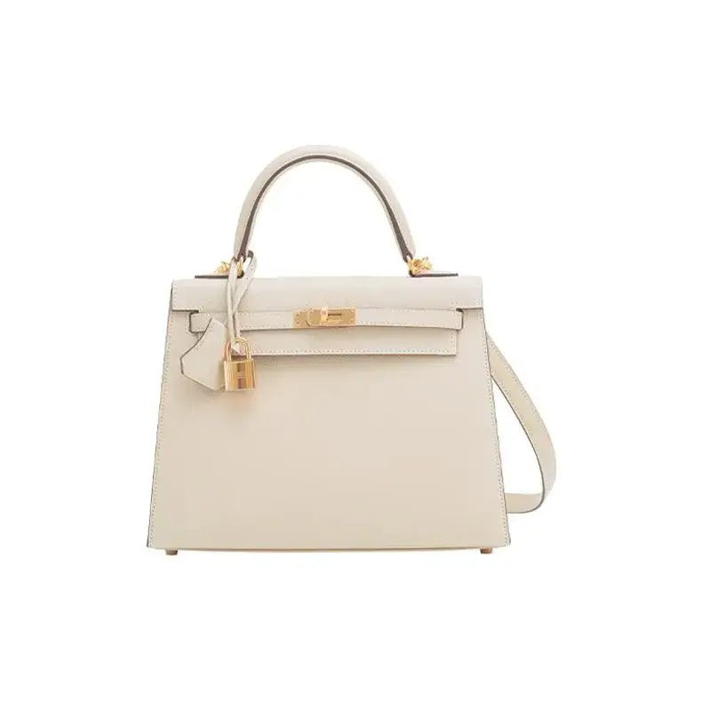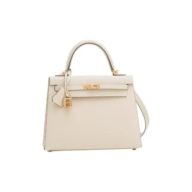 HERMES Kelly 25 Bag Epsom Leather Handbag (25,28) nata white gold hardware | AlmaBagz