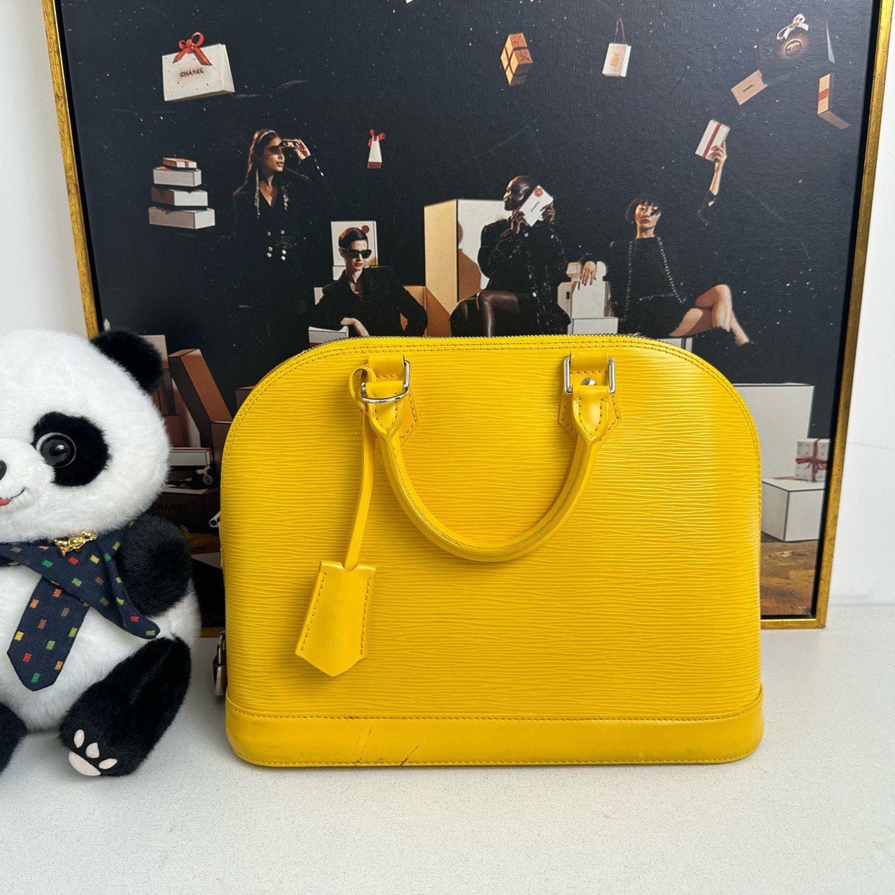 This authentic pre-loved Louis Vuitton Alma PM in vibrant yellow Epi leather is a classic piece for handbag enthusiasts. The structured silhouette, complemented by silver hardware and a sturdy top handle, offers both elegance and practicality. The interior, crafted with a soft brown Alcantara lining, provides ample space for essentials. Perfect for collectors or fans of vintage Louis Vuitton bags, this Alma PM is a distinguished addition to any collection of used designer handbags.