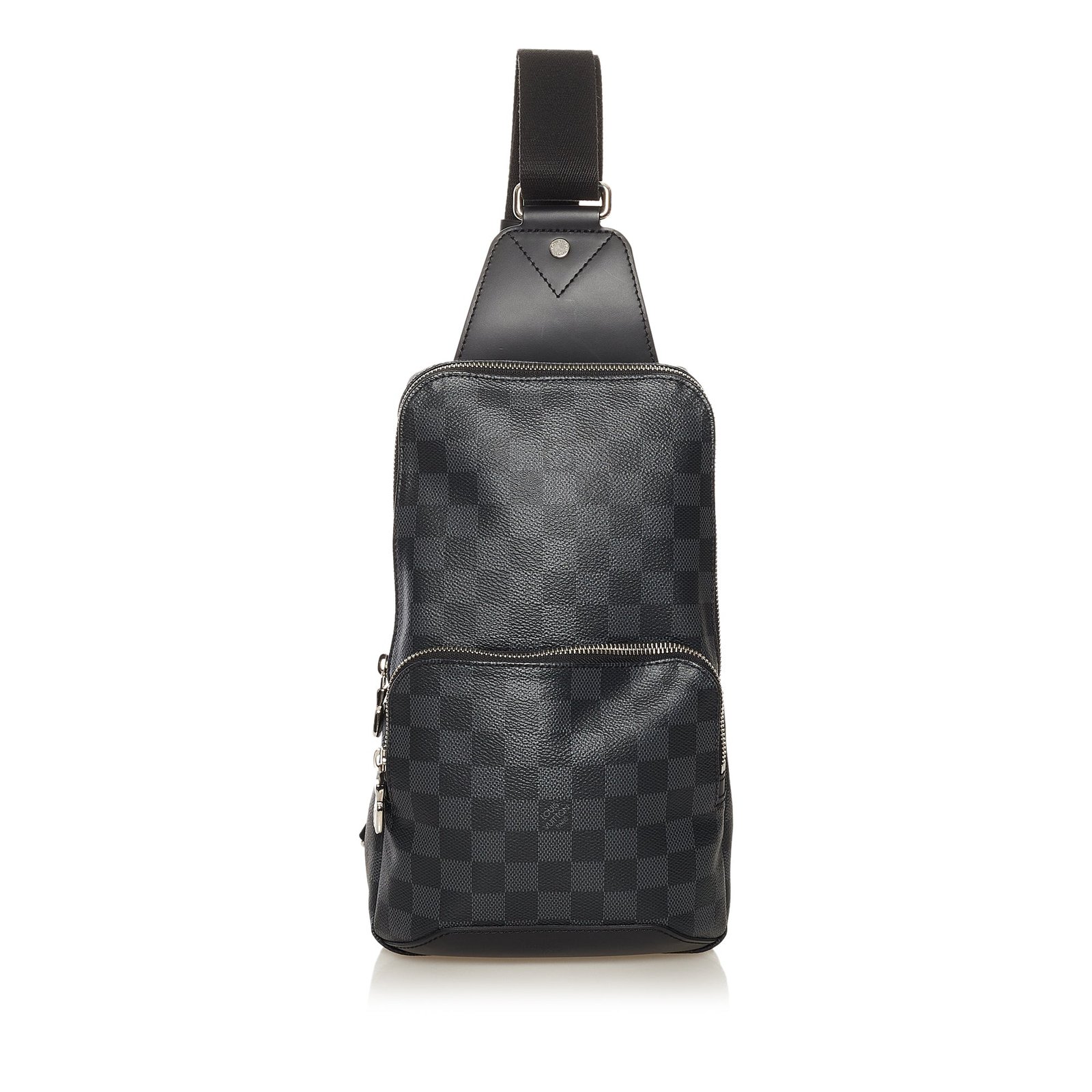 Diese Louis Vuitton Avenue wurde aus schwarzem Damier Graphite Canvas gefertigt. Die Tasche besitzt silberne Details und Reissverschlüsse, einen flachen Schulterriemen, ein Aussenfach sowie ein Steckfach im Innenraum. Die Tasche wird über einer Schulter am Rücken oder auch quer zum Körper getragen.