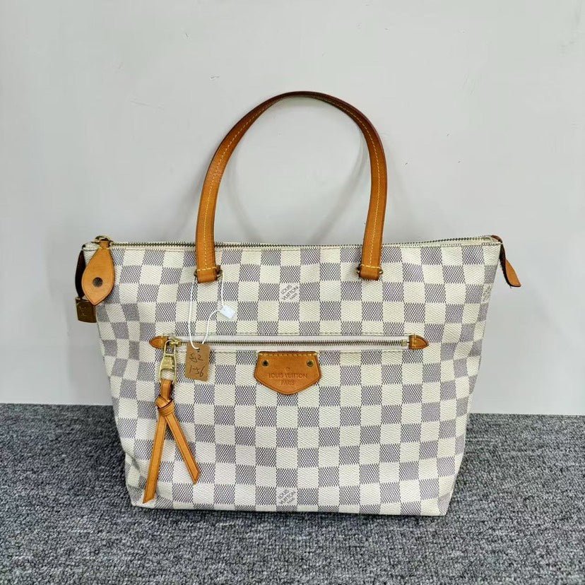 This is an authentic LOUIS VUITTON Azur Tote Bag. This elegant tote is crafted of Louis Vuitton’s signature damier checkered canvas in white and blue. The bag features vachetta leather top handles and trim with polished gold hardware. The top zipper opens to a spacious interior with beige fabric and patch pockets, perfect for everyday use. A versatile and stylish tote for the sophisticated woman.